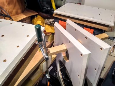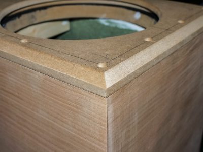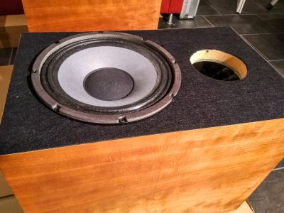 Update: Was lange währt, wird endlich gut. Die Lautsprecher waren schon ein ganze Weile im Betrieb, aber das äußere Finish war noch längst nicht abgeschlossen. Der Aufwand dafür wird auch gern unterschätzt. Mit dem jetzigen Ergebnis bin ich für DIY-Zwecke sehr zufrieden. Das geölte Kirschholz-Furnier sieht ansprechend aus, und auch die Lackierarbeiten der Front- und Rückpanele sind ordentlich geworden, durchaus wohnzimmertauglich. Bei ganz genauer Betrachtung sieht man natürlich, dass dies keine Profiarbeit ist, aber für meine Zwecke ist das durchaus eine 2 mit Sternchen.