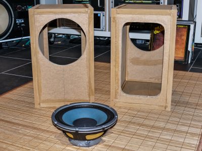 Basierend auf dem Cheap Trick 235 der Zeitschrift „Klang & Ton“ habe ich meine eigene Variante dieses Lautsprechers aufgebaut und bezüglich Gehäusedesign deutlich verändert. Das Gehäuse des CT 235 ist ziemlich aussergewöhnlich konstruiert, entsprach aber weder optisch noch von den Abmessungen her meinen Vorstellungen. Ich habe mich eher am Aufbau der WLM Diva Monitor orientiert. Der CT 235 verwendet die gleichen Chassis wie die WLM Diva, nämlich ein Koaxialchassis aus dem Beschallungsbereich von Eminence, und wird daher gerne als Diva-Klon bezeichnet. Die Frequenzweiche ist allerdings komplett anders designt, und der Hochtöner der WLM Diva ist angeblich gegenüber der Serienversion modiziert.