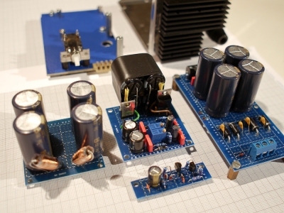 Die zentralen Schwachpunkte des Verstärkers waren mir im Vorfeld bekannt: Das (zu?) kompakte Netzteil erhitzt sich bei längerem Betrieb sehr stark, der Lautstärkeregler hat im unteren Bereich einen massiven Gleichlauffehler, und die im Netzteil und auf den Eingangsplatinen verbauten Elkos von Roederstein gelten als nicht besonders alterungsbeständig, ergo: Austausch fällig!
