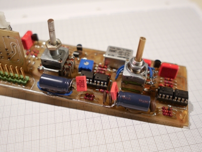 Nachdem alle Arbeiten ausgeführt waren, konnte der erste komplette Testflight erfolgen – also erst einmal alle Module zusammenstecken und ohne Gehäuse testen. Das lief zum Glück auf Anhieb gut. Bei den Stufen, die auf den Eingangsmodulen den Einschleifweg für eine externe Prozessoreinheit treiben (zum 4010 gab es von MBL einen passenden vollparametrischen Equalizer), habe ich noch den DC-Offset abgeglichen, dafür sind bereits Trimmer vorgesehen.